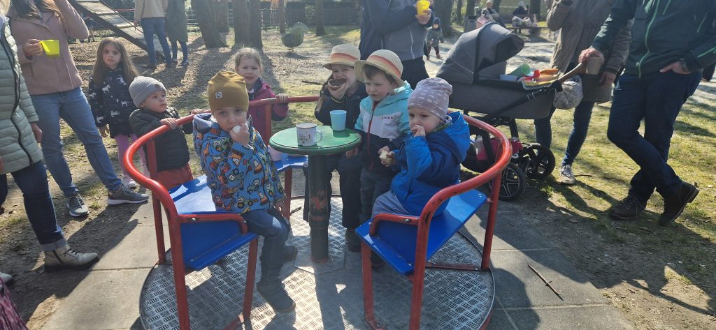 Am 22.03.2026 trafen sich die Raspo-Kids mit ihren Eltern am Spielplatz Brander Wald. Während eines kleinen Spaziergangs durch den Wald freuten sich alle Kinder bis 8 Jahre über viele bunte Ostereier, die gefunden wurden. Anschließend gab es noch ein Geschenk vom Osterhasen und sehr gutes Wetter für alle, so dass das abwechslungsreiche Frühstücksbuffet sehr lange genossen werden konnte. Das Orga-Team Sandra Decker, Joana Stindt und Carolin Cudina bedankt sich bei allen Kindern und Eltern, die diesen schönen Brauch unterstützen.